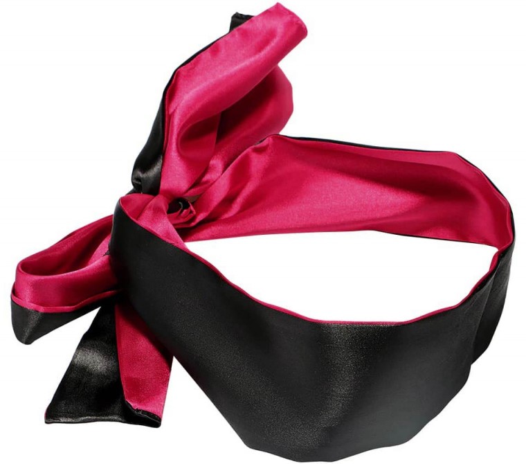 Мягкая и приятная на ощупь повязка из атласа двух цветоа - черного и бордового, абсолютно не просвечивает,