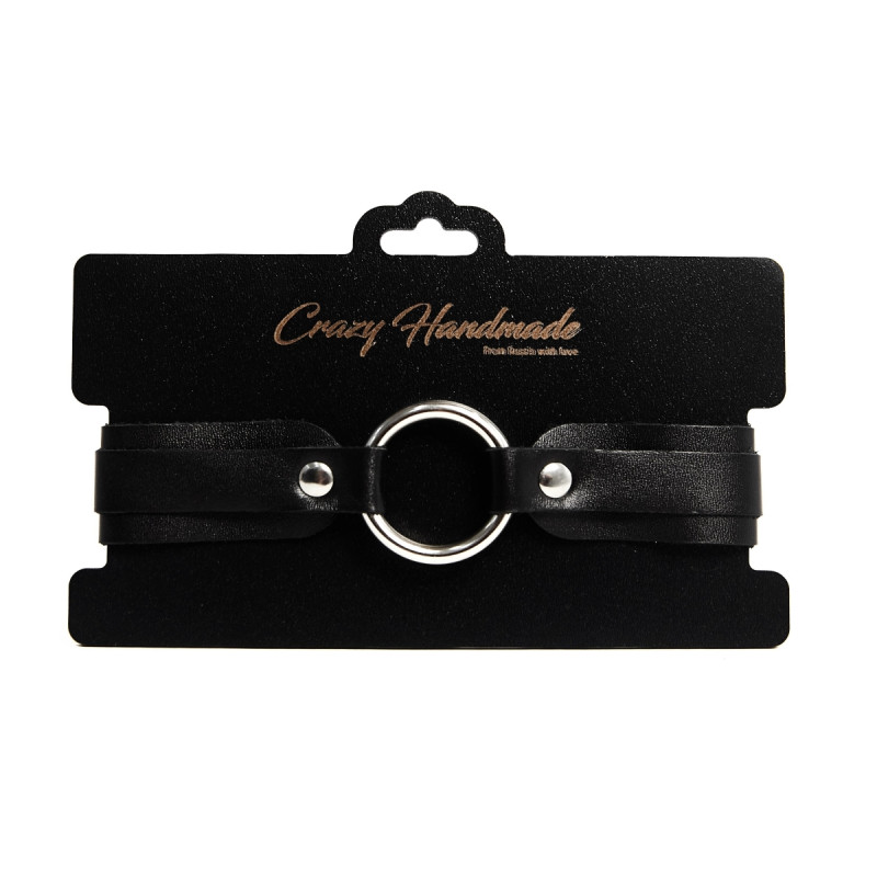 Посередине расположено стальное хромированное кольцо, что позволяет при желании использовать чокер вместе с поводком.