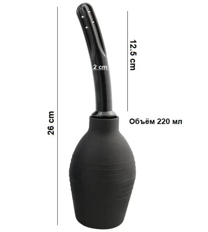 Размер: длина общая 26 см, длина насадки - 12.5 см, диаметр насадки - 2 см. Объем груши 220 мл.